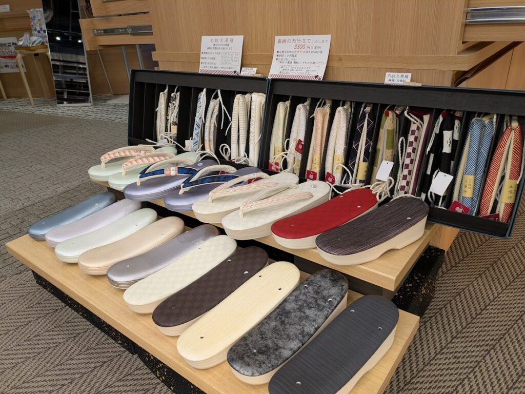 お好きな生地で足袋や草履の鼻緒を誂えたり、草履は、鼻緒と台を組み合わせてお好きな草履を誂えることができます。