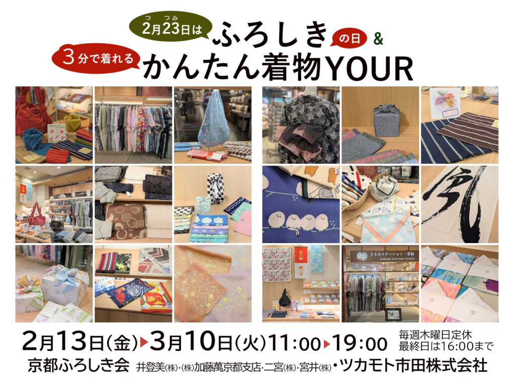 京都ふろしき会・ツカモト市田株式会社による『2月23日はふろしきの日&3分で着れるかんたん着物YOUR』は、3月10日(火)が最終日となります。
