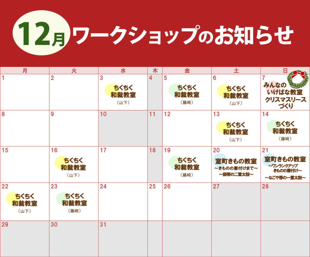 ■ワークショップのカレンダーよりお申込み受付いたします。