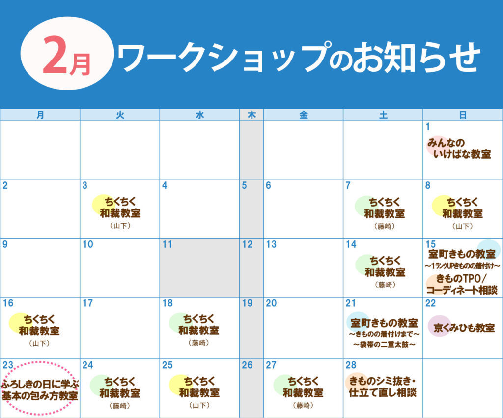 2/23はふろしきの日!!今年もふろしきの日に、宮井×きものステーション・京都『ふろしきの日に学ぶ 基本の包み方教室』の開催が決定しました!!
