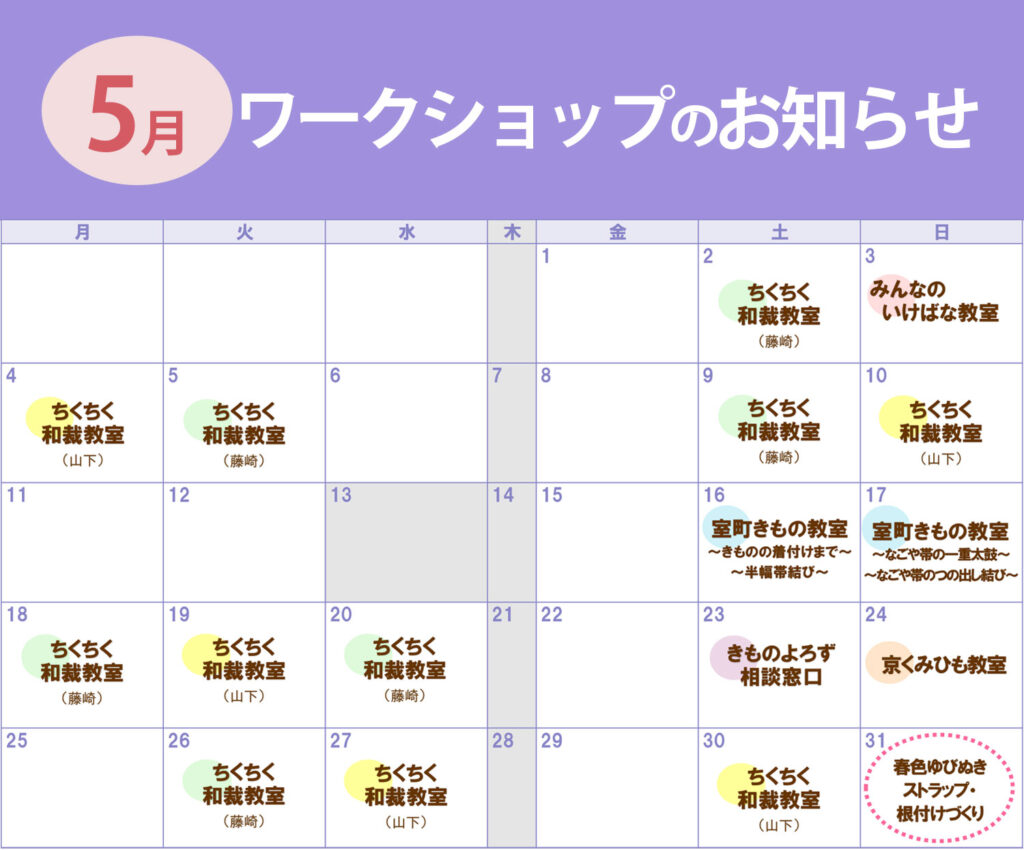 5月のワークショップは3月30日(月)から受付開始いたします