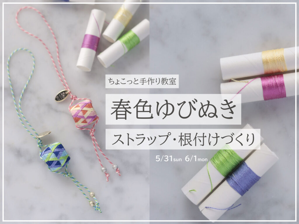 5月31日(日)・6月1日(月)、『ちょこっと手作り教室~春色ゆびぬきのストラップ・根付けづくり』の開催が決定しました!